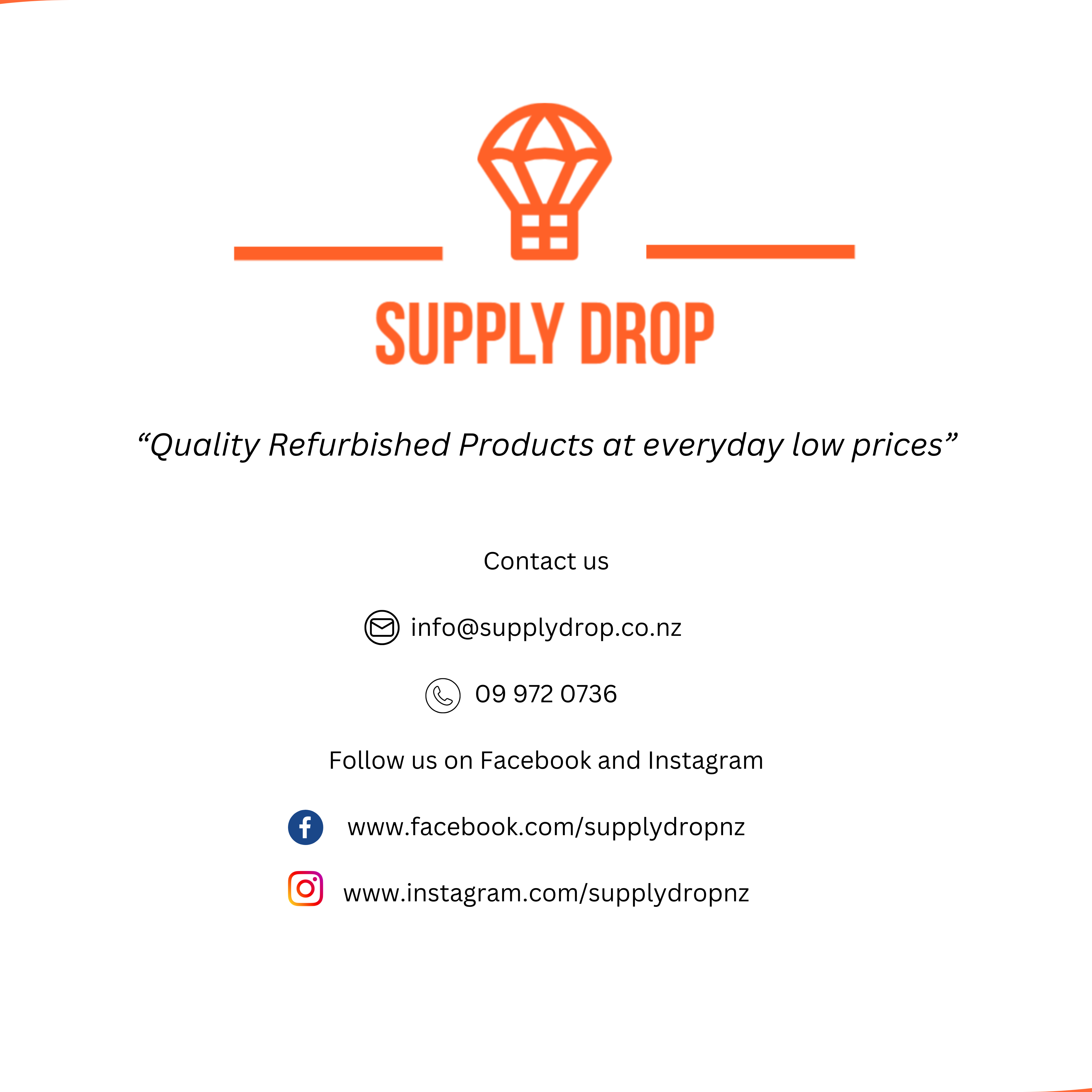 Email info@supplydrop.co.nz and you'll receive a prompt response Monday to Friday from 09:00 to 17:00